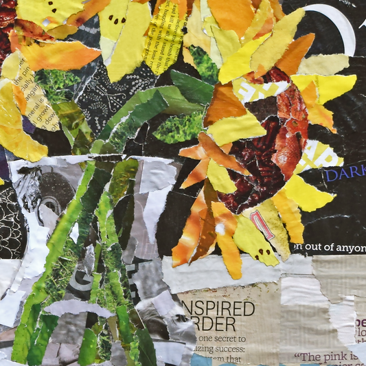 Deborah wasn't always an artist. She had art in high school, but didn't think she could make a living at it, so she went into the video business. Around the age of 50, as she recovered from a jaw surgery, her mother gave her magazines to keep her occupied. Thinking that they were colorful, Deborah began to make collages. Today, you can find her at festivals, galleries, and online. She lives near Akron, Ohio with her husband, dog, and a very old cat.
