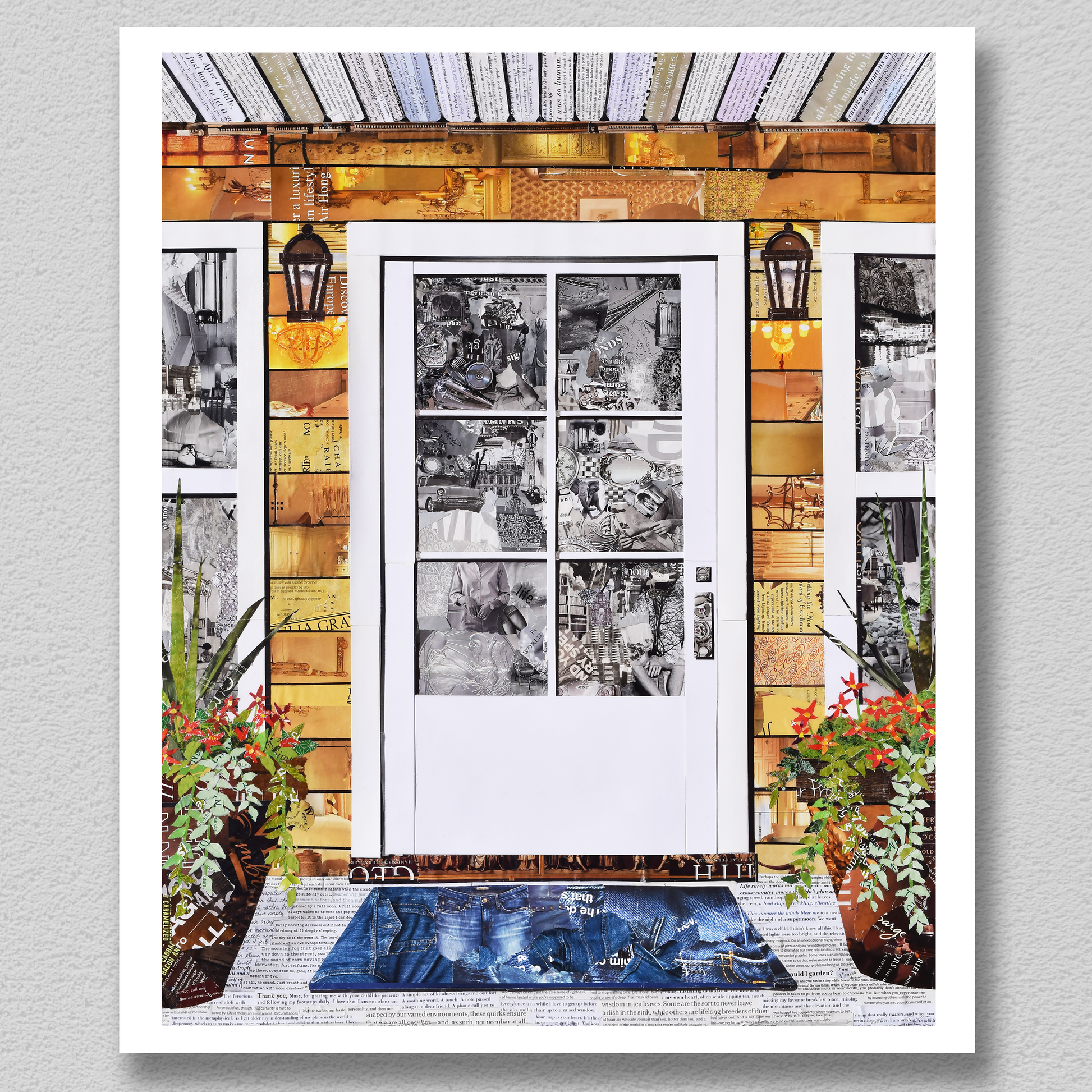 This one was made during the Coronavirus crisis, during the lockdown. It represents our personal lives in our homes and the lifetime of memories. A mask, with C19, is seen in one of the windows. Positive words and phrases are found in the floor boards and porch ceiling.